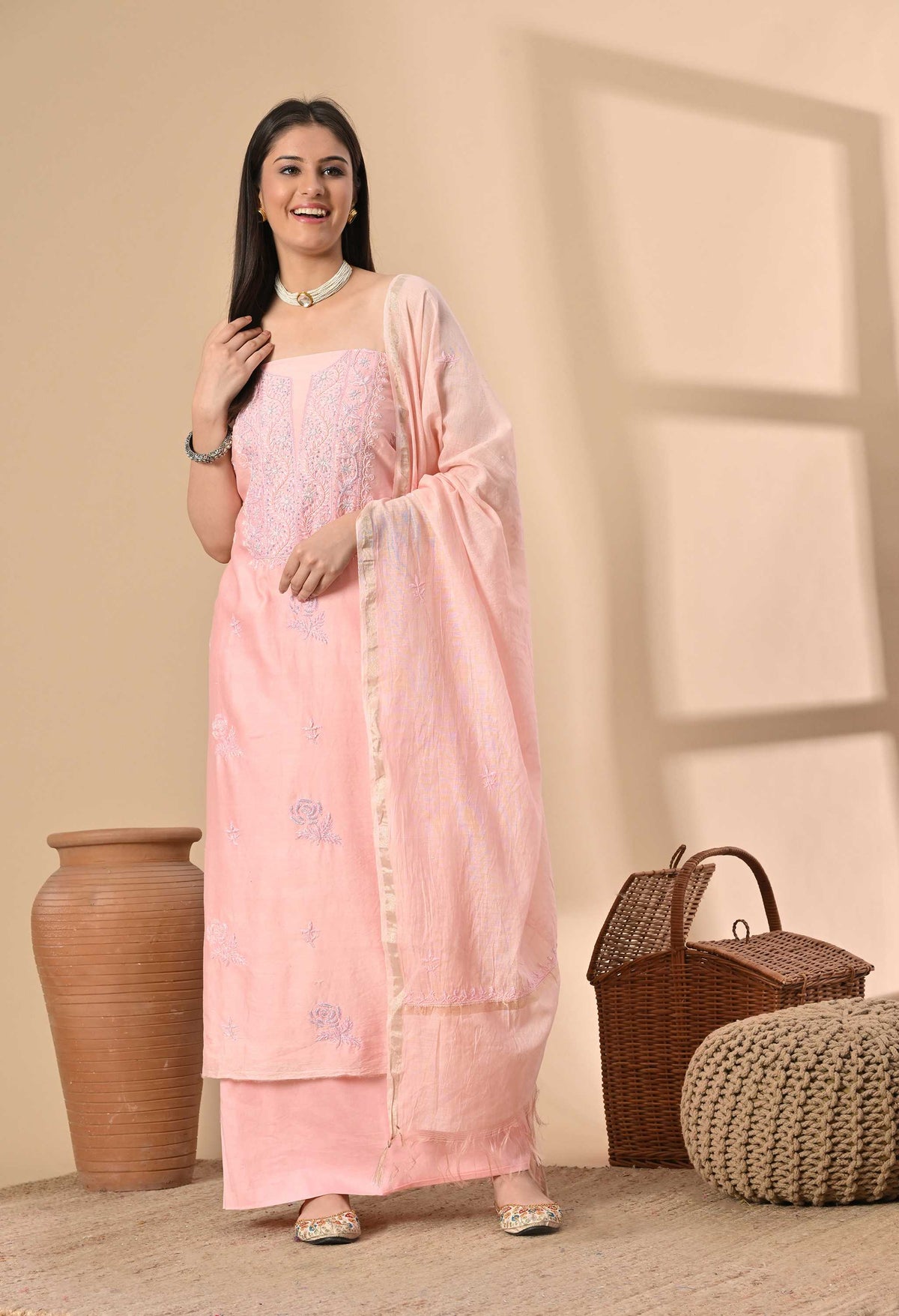 Welcome to our The Weavers Shop By Raavi, This beautiful suit set crafted from fine Chanderi fabric offers a perfect blend of tradition and sophistication. Known for its lightweight texture and glossy finish, it's an ideal choice for any occasion. A stunning salwar suit for women, this designer salwar kameez for women is perfect for both women suits party wear and women suits for wedding. Its intricate women suits design reflects the beauty of handloom suits, making it a standout in your women suits clothing collection.