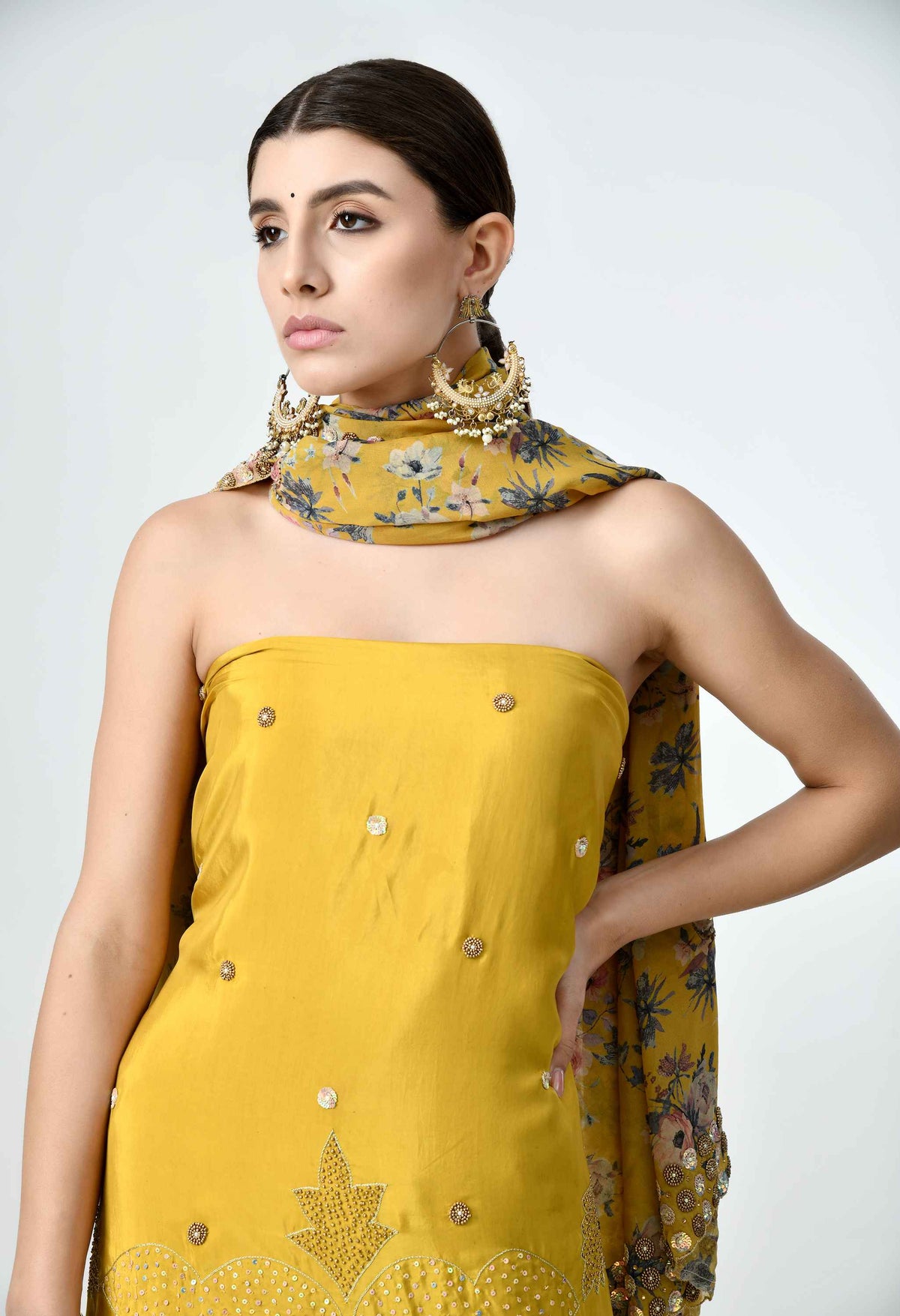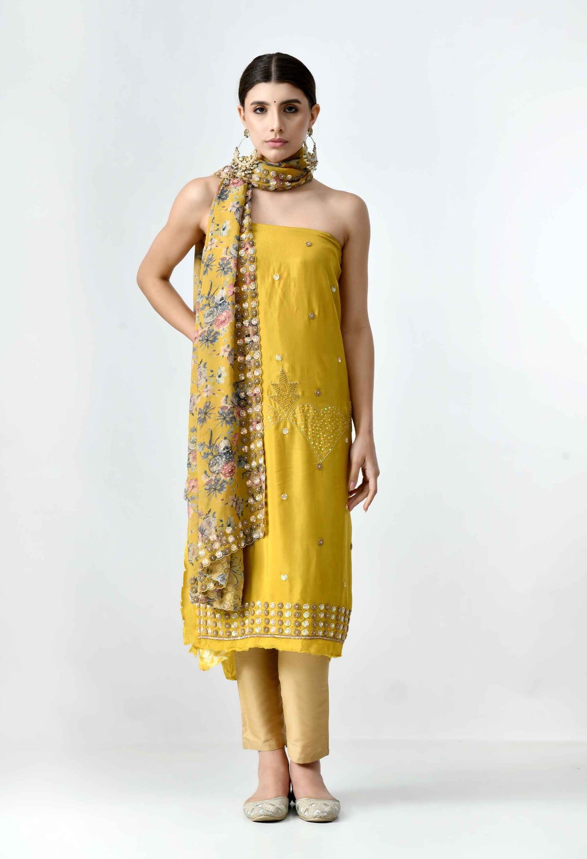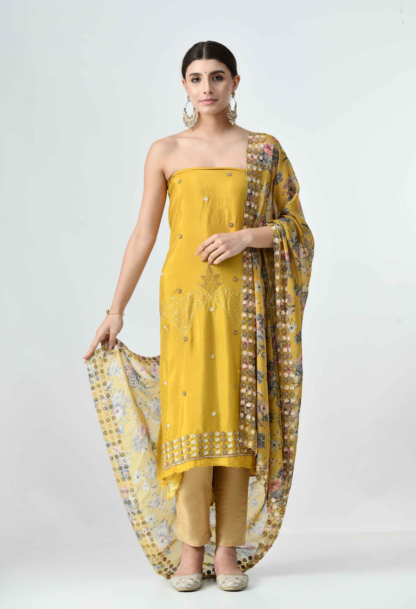 Welcome To Our The Weavers Shop By Raavi, with this elegant mango yellow crepe suit set, adorned with delicate sequence tiki and intricate beadwork. this Crepe Salwar Suit, adorned with intricate hand embroidery, sequins tiki, and beadwork. Perfect for weddings, parties, and festive occasions, this designer salwar kameez for women blends comfort with luxury. Crafted from fine crepe, it drapes beautifully and adds a vibrant charm to your wardrobe. Explore stunning suit design ideas and upgrade your collection of women suits for every special moment. Ideal for party wear or as a wedding suit, this handcrafted masterpiece redefines style. Shop now to own timeless beauty