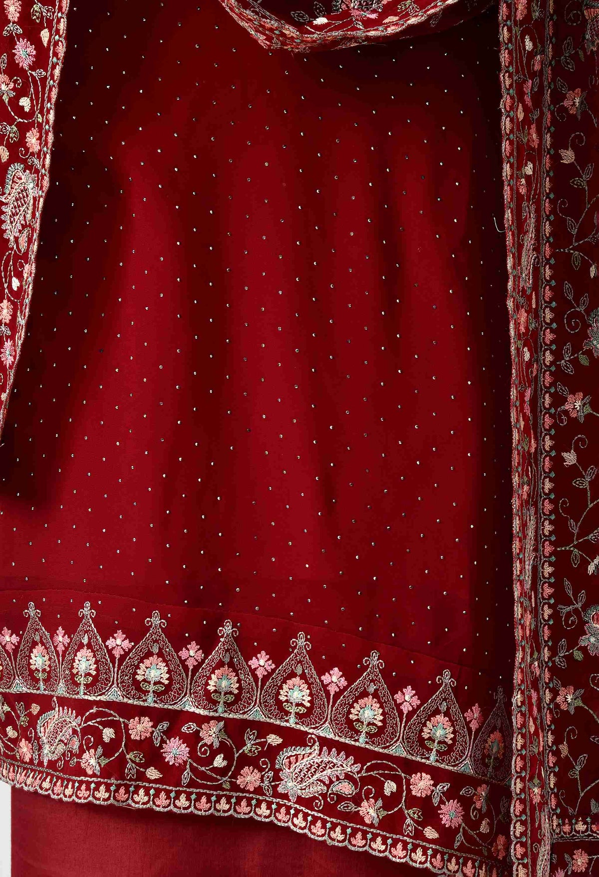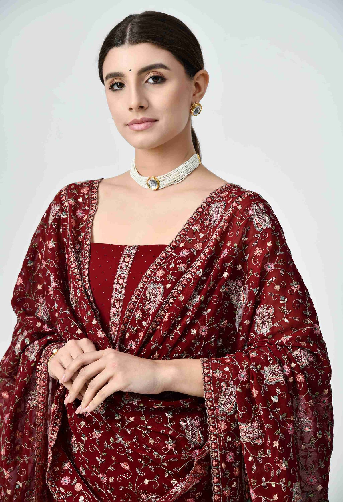 Welcome to The Weavers Shop, with this beautiful Georgette Salwar Suit, adorned with graceful Swarovski crystals and intricate zari embroidery. The lightweight georgette fabric drapes gracefully, offering comfort and sophistication in every movement. The shimmering Swarovski embellishments add a touch of luxury.
