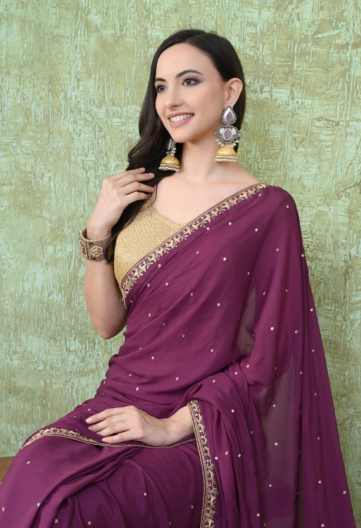 Welcome To Our The Weavers Shop By Raavi, With this exquisite crepe saree, adorned with delicate sequin and dabka hand embroidery. The smooth, flowing crepe fabric ensures effortless draping while offering a refined texture that enhances every movement. making this saree an ideal choice for weddings, receptions, festive celebrations, and evening parties. The artistry of hand embroidery brings depth and richness to the fabric, reflecting the finest craftsmanship.