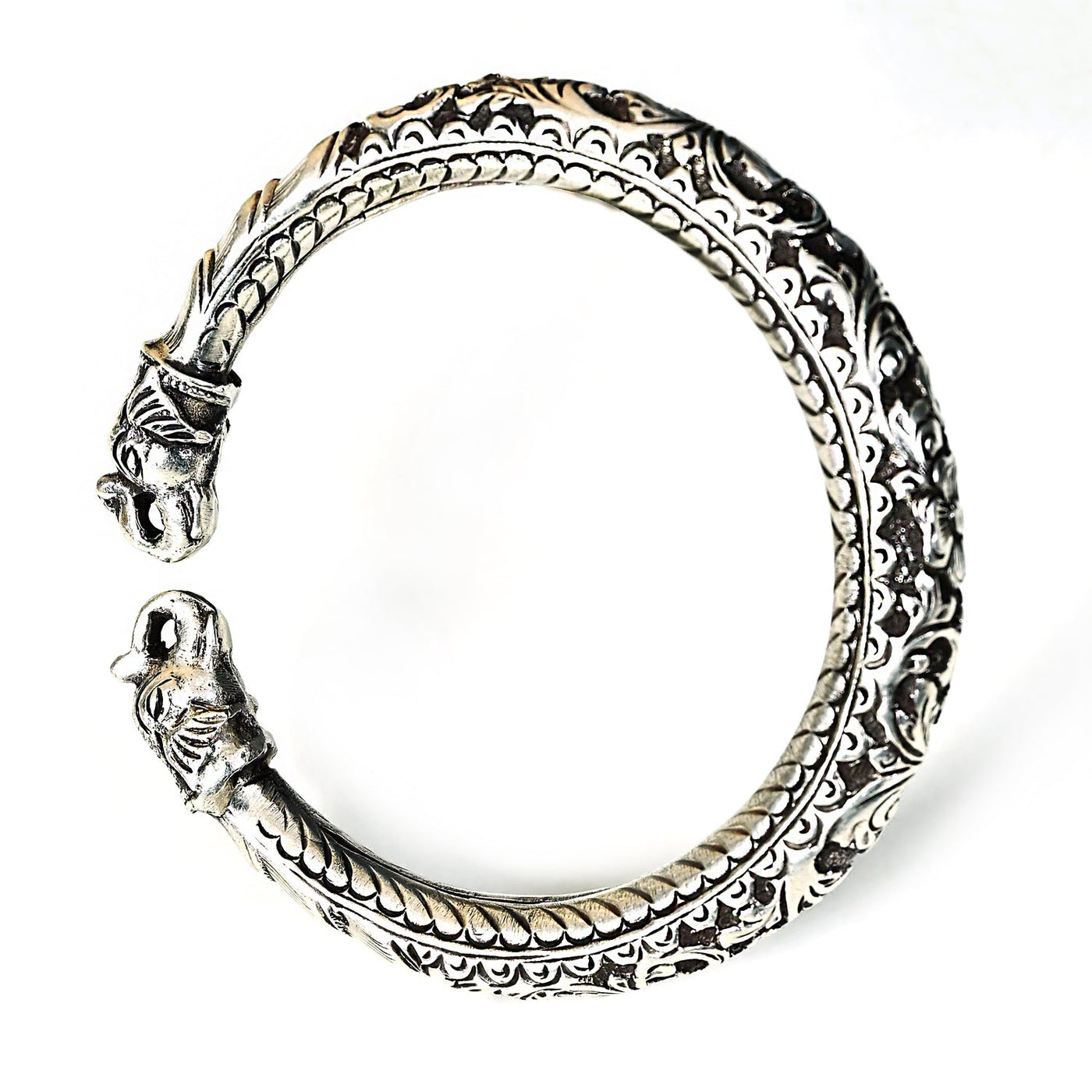 Welcome To Our The Weavers Shop By Raavi, Embrace the timeless allure of the Antique Silver Shravan Kada from the The Weavers Shop. Crafted with passion and precision, this piece represents the quintessence of old heritage silver jewelry. Each Kada is a testament to the skilled artistry involved in creating 92.5 silver jewellery, promising both quality and authenticity. Revel in the exquisite handmade detail that captures the spirit of tradition, all while supporting Made in India craftsmanship. Perfect for collectors and fashion enthusiasts alike, this Antique Silver Bangle from The Weavers Shop is more than an accessory – it's a piece of history wrapped around your wrist.