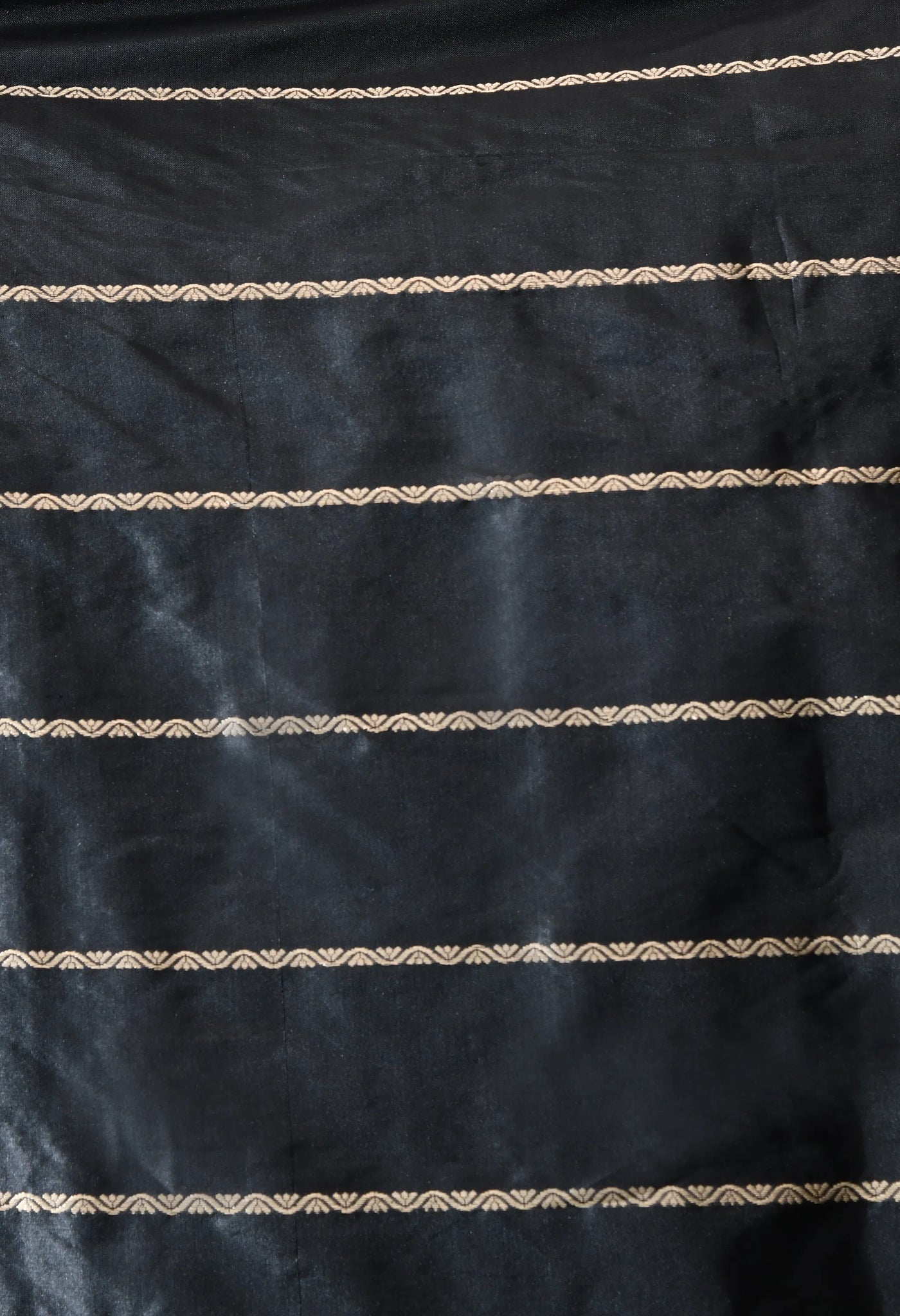 Welcome to The Weavers Shop by Raavi, where tradition meets elegance. Our Pure Katan Silk black Saree, meticulously handwoven with double Zari work, is a true masterpiece of heritage, luxury, and craftsmanship. Revered for its opulence, this saree takes 15 days to create, reflecting the unmatched skill and dedication of artisans who pour their heart and soul into every thread.