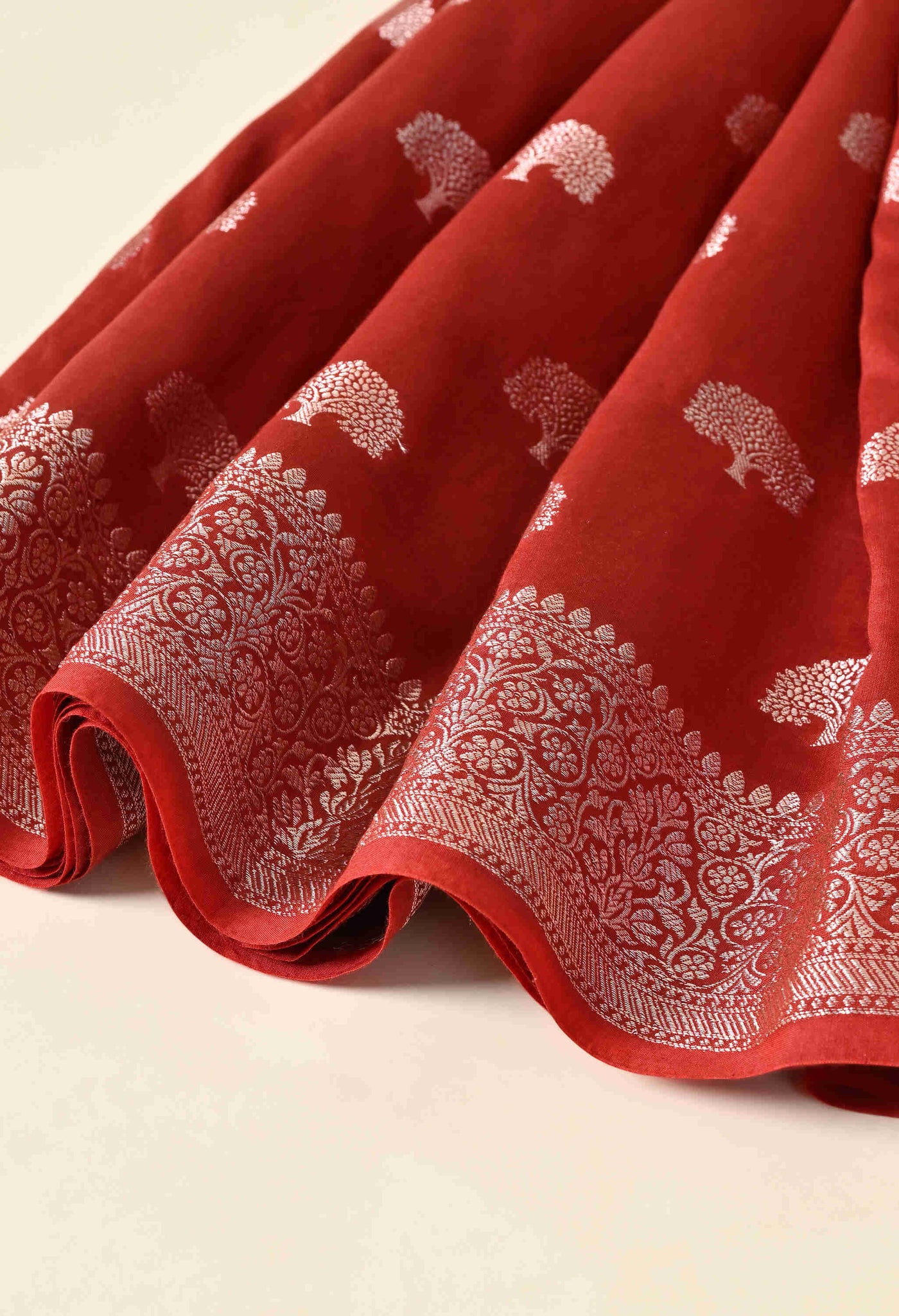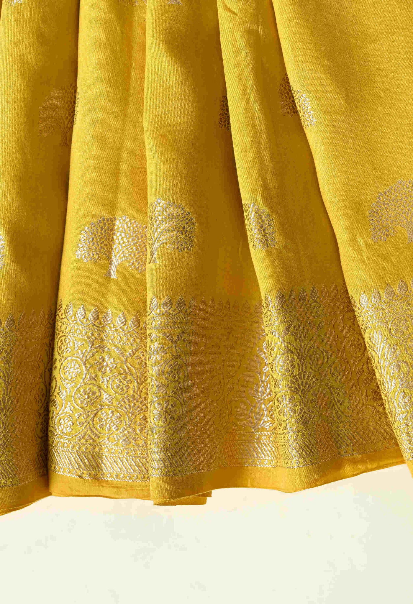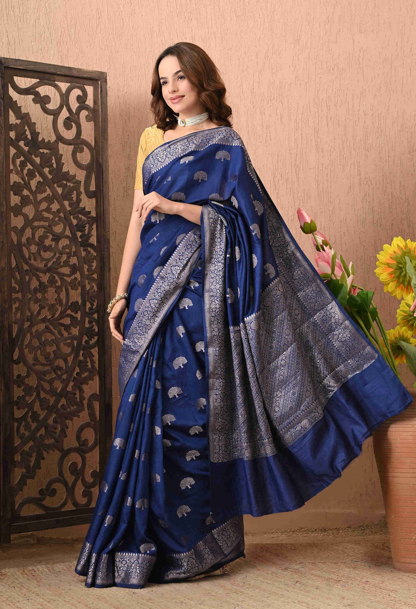 Welcome To Our The Weavers Shop By Raavi, With our beautiful Banarasi Silk Saree, crafted with luxurious silk and adorned with Zari Tree Designs. This stunning saree embodies the rich heritage of Banaras, woven with precision to create a fabric that’s both regal and graceful. This zari tree motifs symbolize strength, growth, and prosperity, adding a unique touch of nature inspired elegance to the saree. The rich silk fabric, with its smooth, lustrous finish, drapes beautifully, making it perfect for weddings, festivals, and grand celebrations.