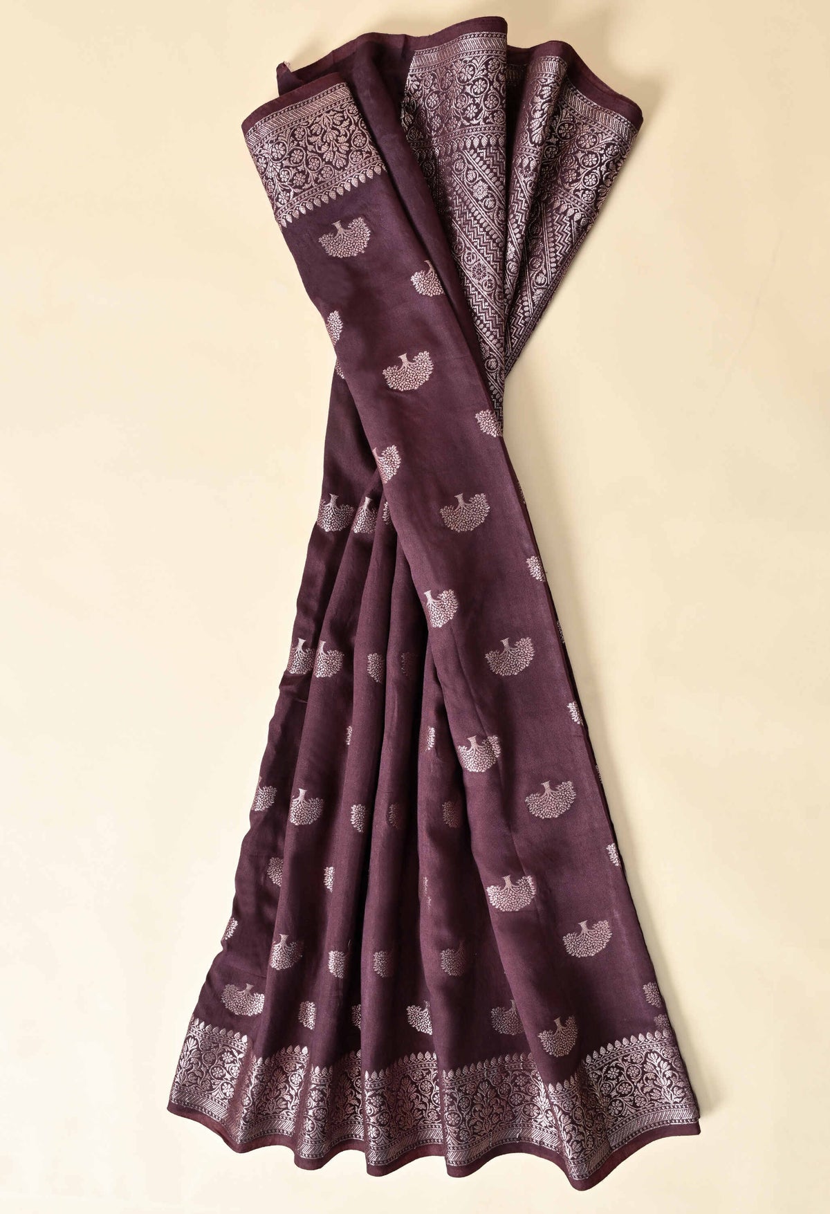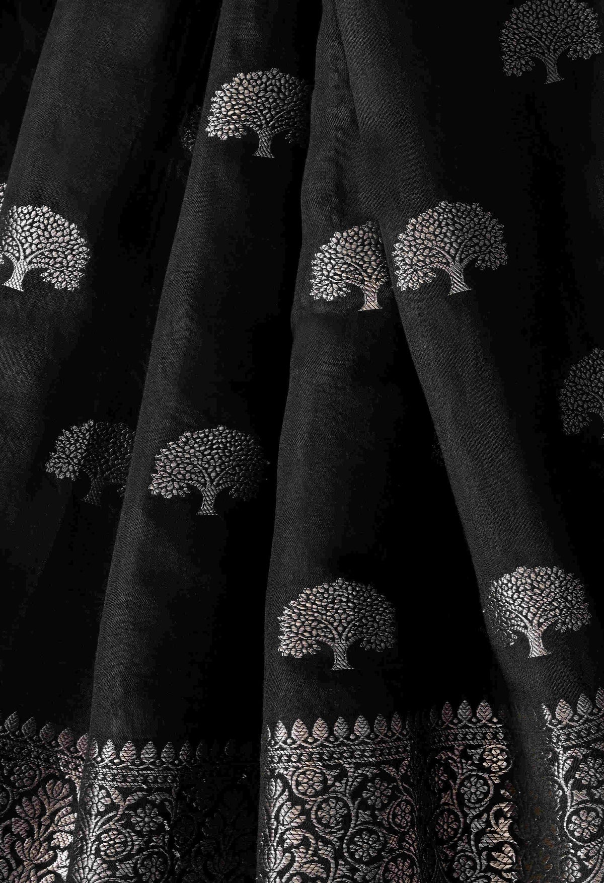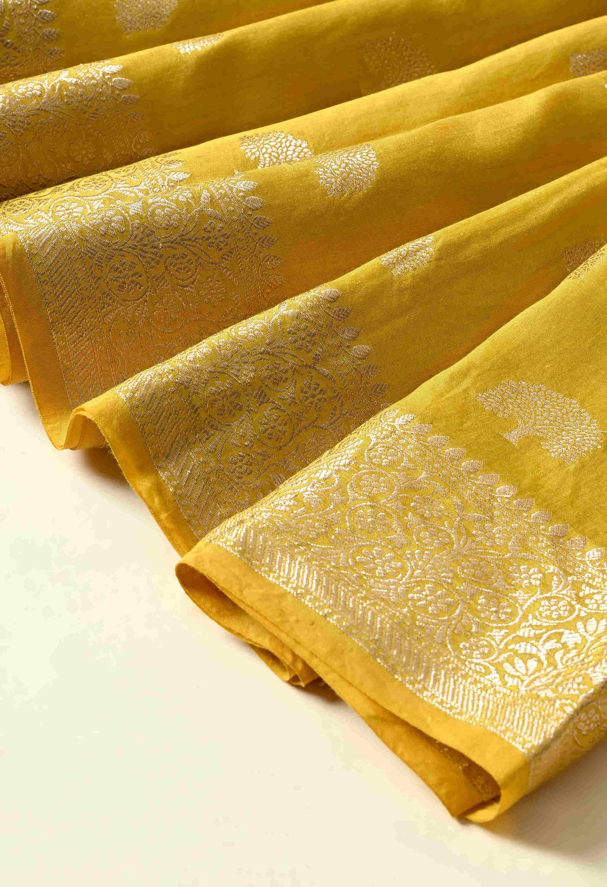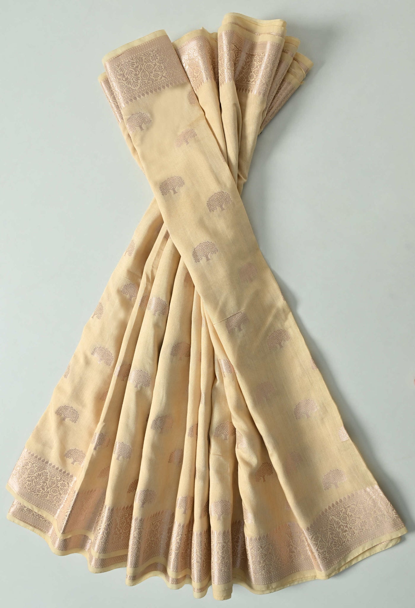 Welcome To Our The Weavers Shop By Raavi, With our beautiful Banarasi Silk Saree, crafted with luxurious silk and adorned with Zari Tree Designs. This stunning saree embodies the rich heritage of Banaras, woven with precision to create a fabric that’s both regal and graceful. This zari tree motifs symbolize strength, growth, and prosperity, adding a unique touch of nature inspired elegance to the saree. The rich silk fabric, with its smooth, lustrous finish, drapes beautifully, making it perfect for weddings, festivals, and grand celebrations.