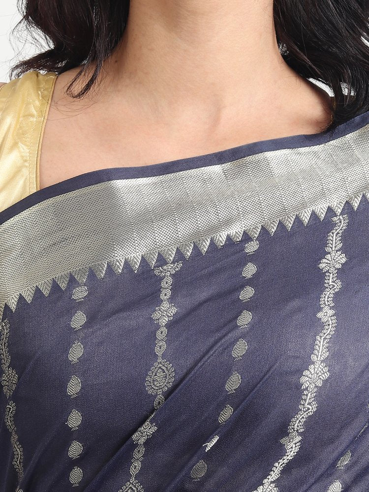 Welcome To Our The Weavers Shop by Raavi, With this exquisite Banarasi silk saree, a symbol of timeless elegance and rich cultural heritage. Woven with finesse using premium silk threads, this saree features intricate zari work, delicate floral motifs, and graceful patterns that highlight the unmatched craftsmanship of Banaras.