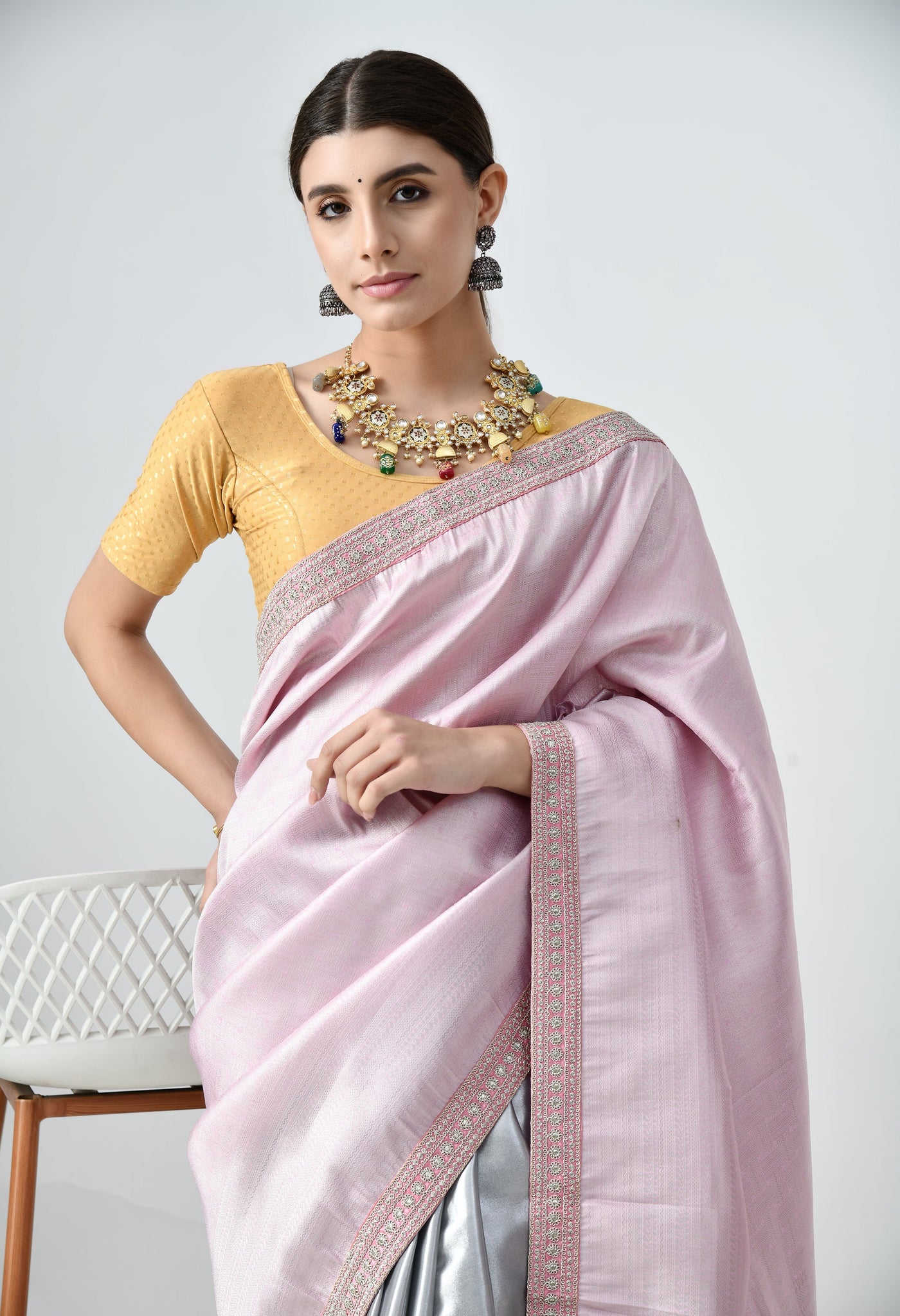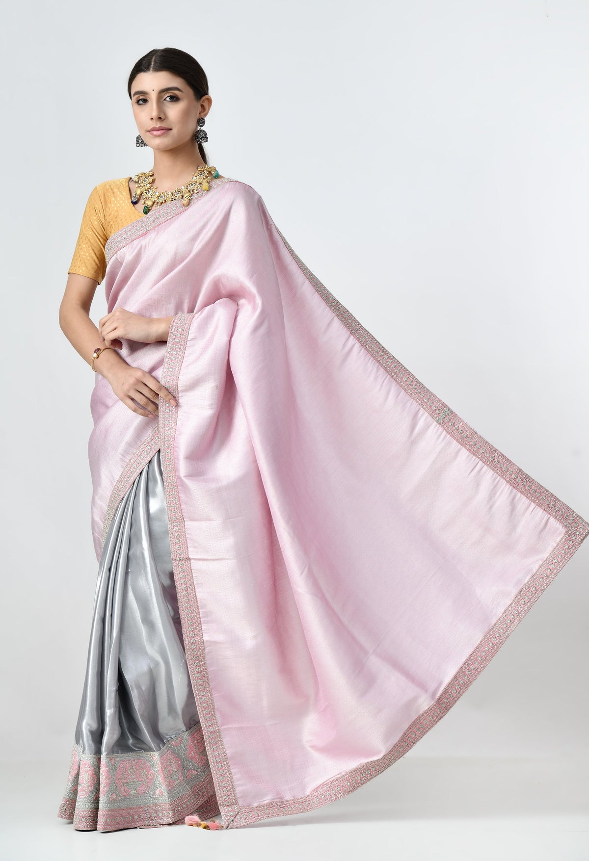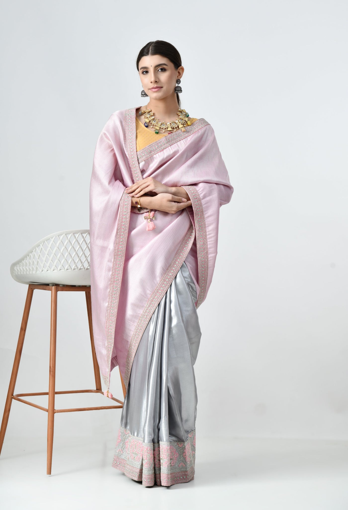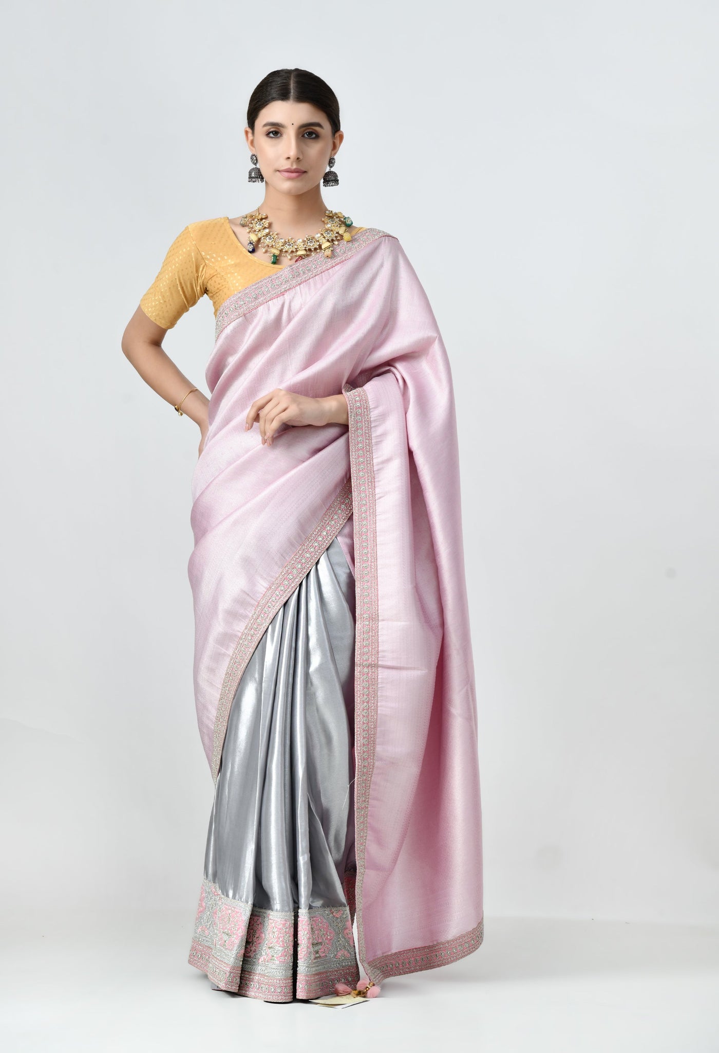 Perfect for weddings, parties, and festive occasions, this saree combines elegance with comfort. The fluid drape of satin silk ensures effortless styling, while its lightweight structure makes it easy to wear for extended celebrations. The beautiful color combination is both modern and timeless.