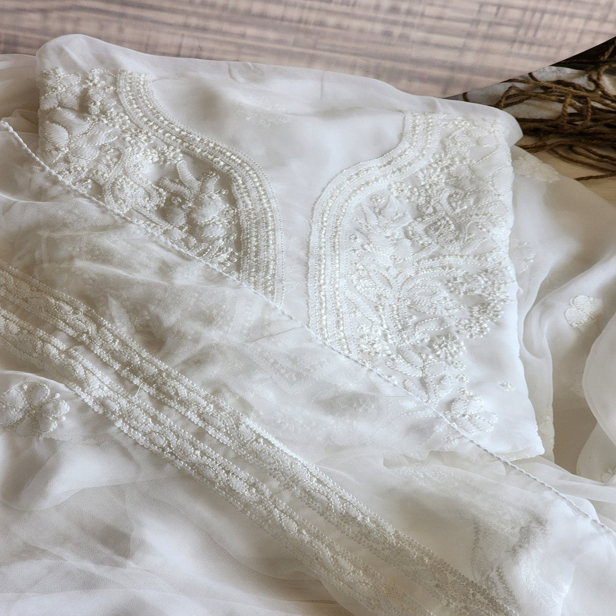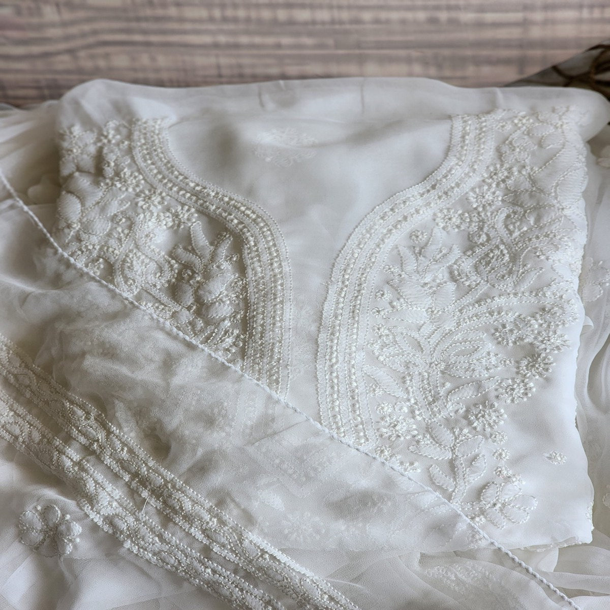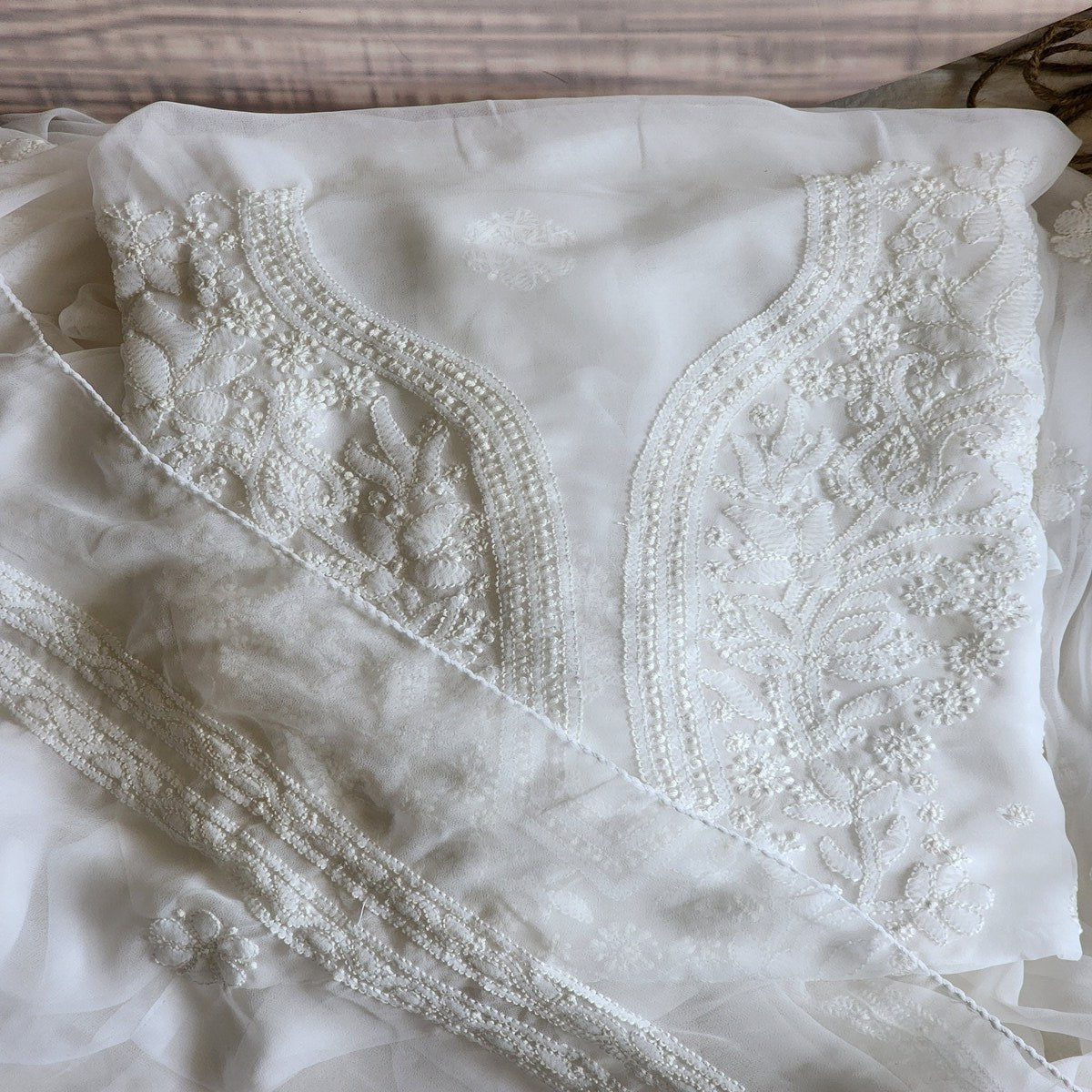 Welcome To our The Weavers Shop By Raavi, This Pure Georgette Suit exudes sophistication and elegance with its exquisite Chikanakri hand embroidery work. Perfect for those who appreciate the art of traditional craftsmanship, this suit set is a must-have for any wardrobe. The delicate embroidery adds a luxurious touch, making it ideal for women suits party wear, women suits for wedding, or formal gatherings. The beautiful women suits design combines comfort and style, offering a timeless appeal for every occasion. Whether you're attending a wedding or a formal event, this women suits clothing offers an effortlessly graceful look. Its versatile design is perfect for women suits wedding or simply adding a refined touch to your everyday wear. Elevate your collection of women suits with this stunning, finely crafted suit set clothing.