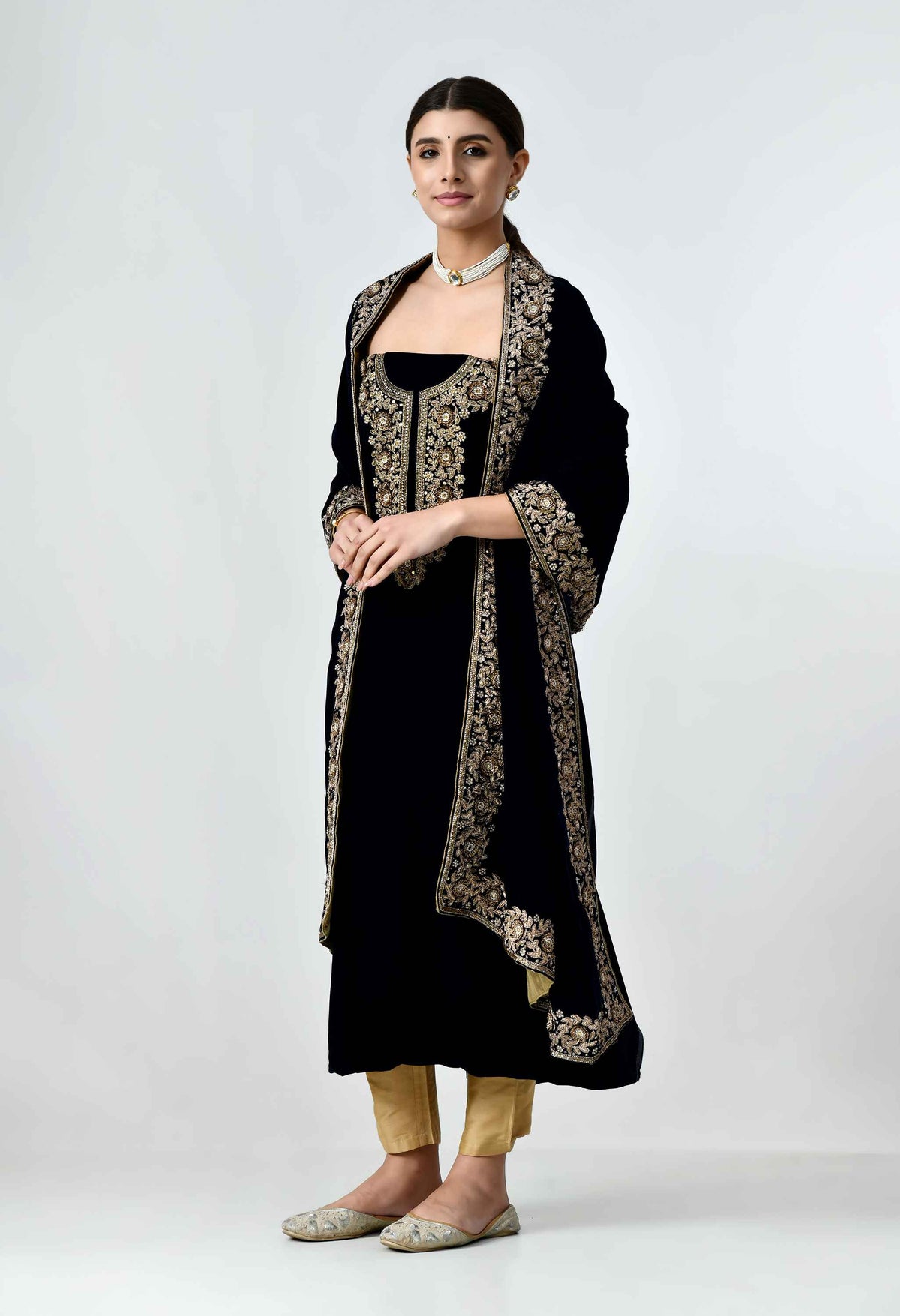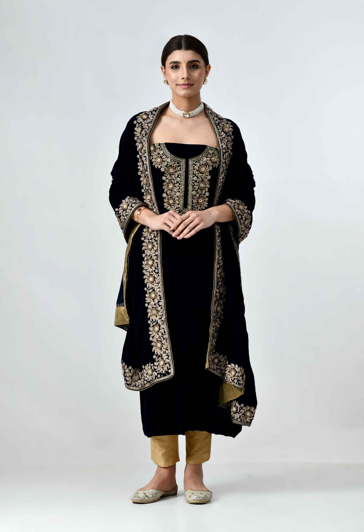 Welcome to Our The Weavers Shop by Raavi, with this stunning dark blue velvet salwar and suit for women, a perfect blend of traditional craftsmanship and contemporary elegance. Designed for the modern woman, this suit set features luxurious velvet fabric adorned with intricate zardosi hand embroidery, showcasing exquisite artistry and attention to detail. This women suit is tailored to perfection, making it a must have for special occasions. if you're attending a wedding, a festive celebration, or a party, this women suit party wear ensures you stand out with sophistication.