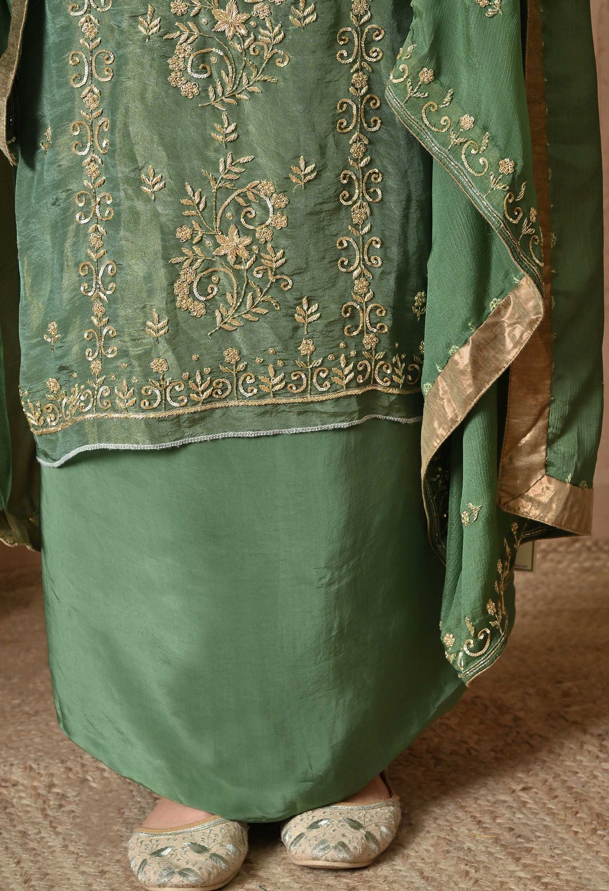 Embroidery: Zardosi Dabka Hand Embroidery Work.